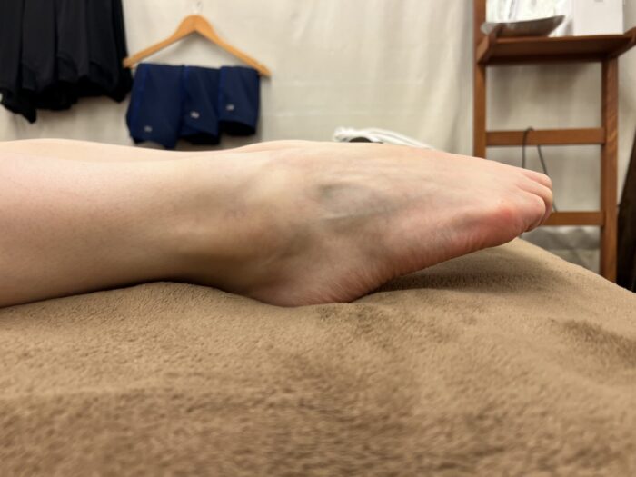 右の足首が