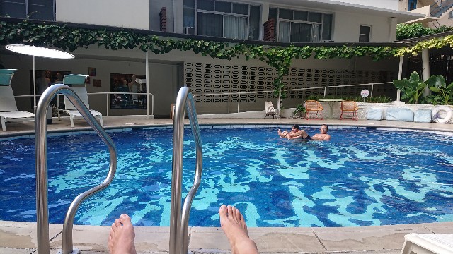 ホテルのロービーで