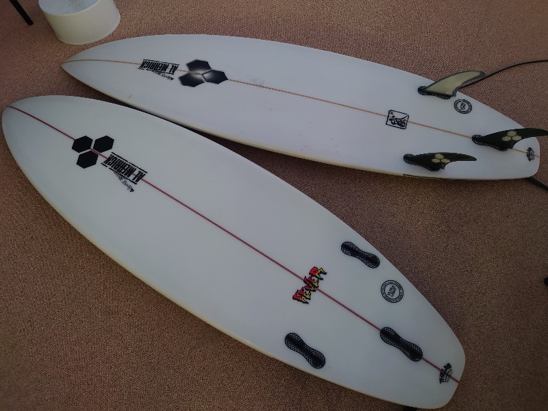 ボビー・マルティネスは、波が小さいカリフォルニアの夏の海でも彼が最大限にサーフィン楽しめるように、できるだけ短いボードを作るようにチャンネルアイランズにお願いをしました。彼はまたそれがクワッドでなければならない事、そして彼のハイパフォーマンスなサーフィンに応えられなければなりませんでした。ボビーが普段乗るショートボードは5’8”ですが、このカスタマイズされたクアッドフィンボードの場合、彼は5’2”に下げる必要があると考えていました。ボビーは、レールラインを短くし、全体の幅にボリュームを分散させることで、フラットセクションの上をスケートしやすく、スピードを維持したまま彼が得意とするハードターンができると考えたのです。